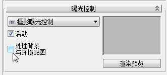 - 在“曝光控制”卷展栏上,确保“处理背景及环境贴图”处于关闭状态。