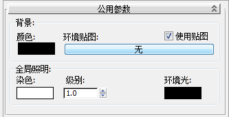 - 打开“渲染”菜单并选择“环境”,以打开“环境和效果”对话框。在“公用参数”卷展栏上,单击“环境贴图”按钮(此时,按钮文本显示“无”)。