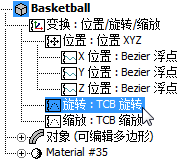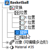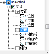 现在,篮球具有一条旋转轨迹,没有次要 X、Y 和 Z 旋转轨迹。