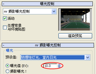 曝光值从 15 变化到 10,这时渲染的预览缩略图看上去亮了一些。