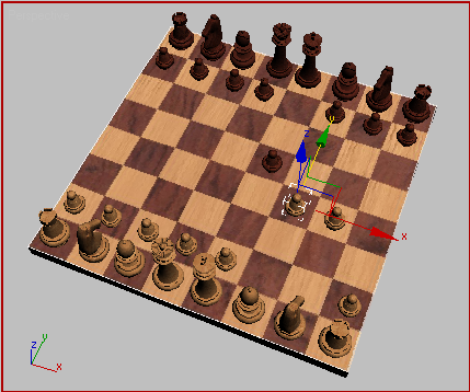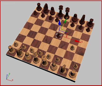 播放动画。白方王离开棋盘,但是并未旋转,因为“关键点过滤器”不允许在旋转轨迹上进行键控设置。