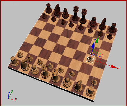 选择位于右下角的白方马前兵。如果未显示变换 Gizmo,则需右键单击,然后从四元菜单中选择