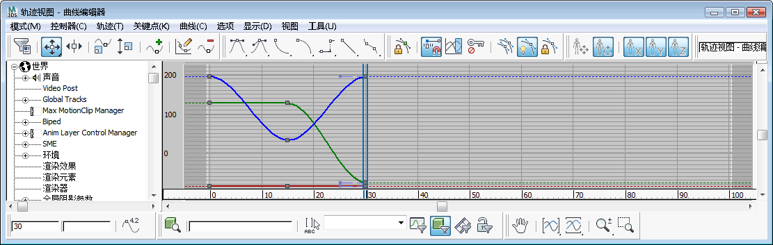 “曲线编辑器”是“轨迹视图”功能的一部分,“轨迹视图”功能是用于管理和调整动画的通用工具。