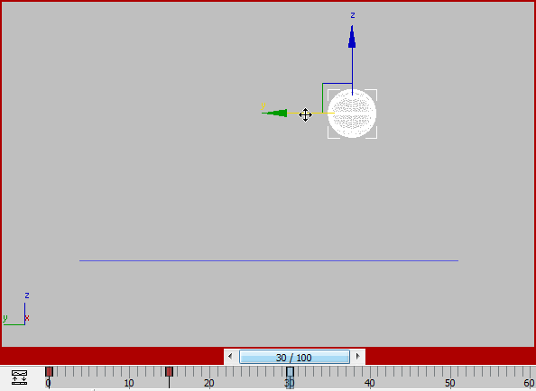 现在,篮球从帧 0 移向前至帧 30 处,就像您在滑动时间滑块后看到的一样。动画看上去仍旧非常机械,但稍后便可对其进行改进。
