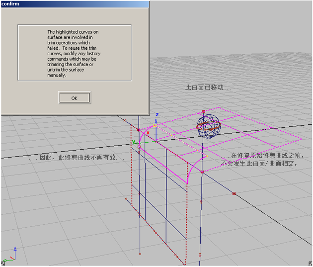 如果要对创建次曲面时已自动修剪的主曲面应用其他修剪操作,可能会看到以下警告消息: