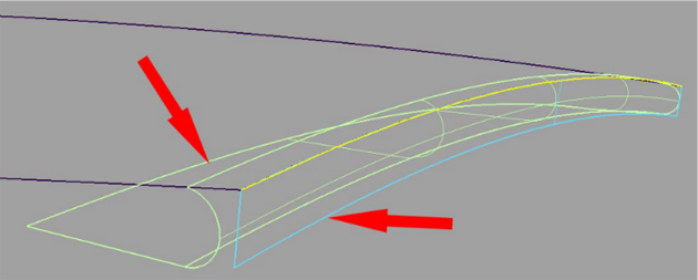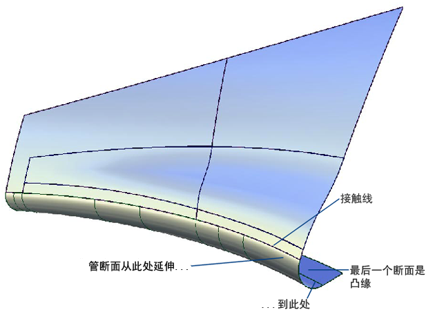 如果创建的管具有“G2 Curvature”连续性,它将失去 360 度断面,而是在接触线与凸缘之间创建。