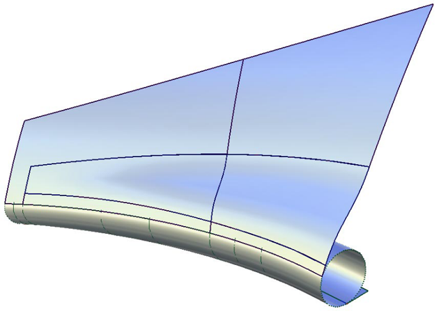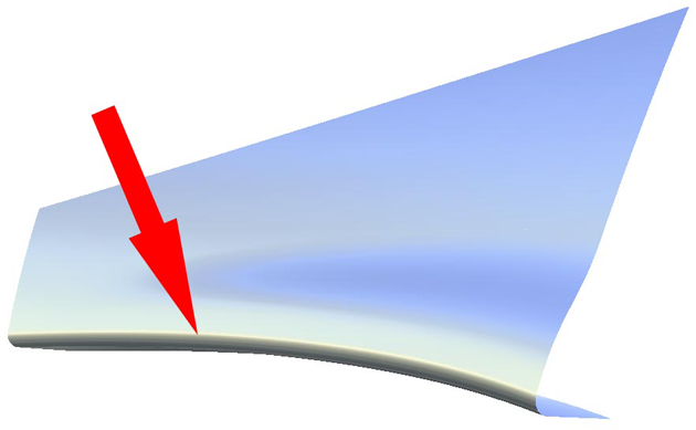 “Tube flange”工具提供了一种边磨光解决方案,在这种解决方案中,焦点位于接触线上。相交曲线定义管与主曲面的接触位置。从美学角度来讲,控制高光变化的线十分重要。为此,“Tube flange”工具确保在所选几何形状处添加新的管。