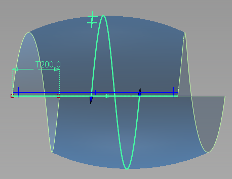 若要创建螺旋曲面,您可以选择可以要围绕指定轴旋转的一条或多条曲线。然后选择两个点,这两个点与(第一条)曲线上的某个点共同定义一个旋转圆弧。然后,您可以调整“Pitch”选项,在曲线旋转时向上或向下移动曲线,从而产生螺旋效果。