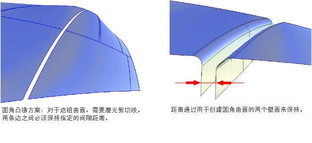 第二种情况是,由预定义轮廓线控制圆角的创建。