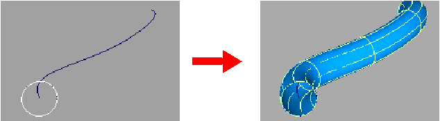 “Extrude”工具在形状曲线的位置开始,按照路径曲线的形状创建新曲面。