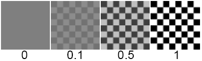 两种纹理颜色之间的对比度。有效/滑块范围是 0(将这两种颜色平均到整个纹理上)到 1。默认值是 1。