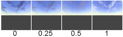 控制有多少天空被云所覆盖的“Cloud texture”的一个阈值。随着“Threshold”值增加,纹理的更暗的区域不会产生云。有效范围为 0 到无限。滑块范围是 0(整个天空是多云的)到 1(无云)。默认值是 0.5。