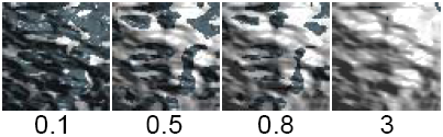 围绕纹理的平均值应用到纹理中的所有值的比例系数。有效范围为 0 到无限。滑块范围是 0 到 1。默认值是 1。