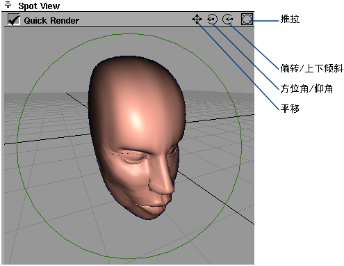 “Track”、“Azimuth/Elevation”和“Yaw/Pitch”工具改变聚光灯的实际位置或方向。“Dolly”工具仅改变“Spot View”窗口中的视图,而不改变聚光灯的位置或方向。