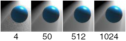 高“Resolution”值会产生尖锐边的阴影,但也会使用更多的内存并降低渲染速度。低“Resolution”值使用很少的内存并会加速渲染速度。使用“Resolution”值 50 会产生非常柔和且平滑的阴影。有效范围为 2 到 4096。滑块范围是 8 到 1024。默认值是 512。