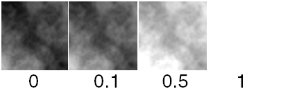 围绕纹理的平均值应用到纹理中的所有值的比例系数。有效范围为 0 到无限。滑块范围是 0(无噪波)到 1(强噪波)。默认值是 1。