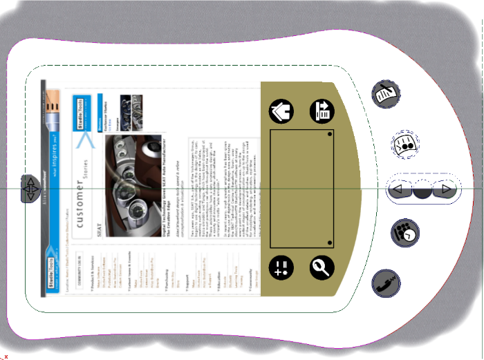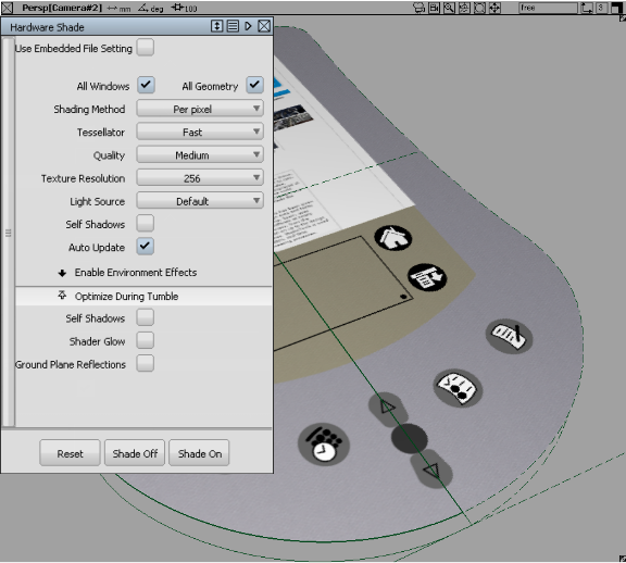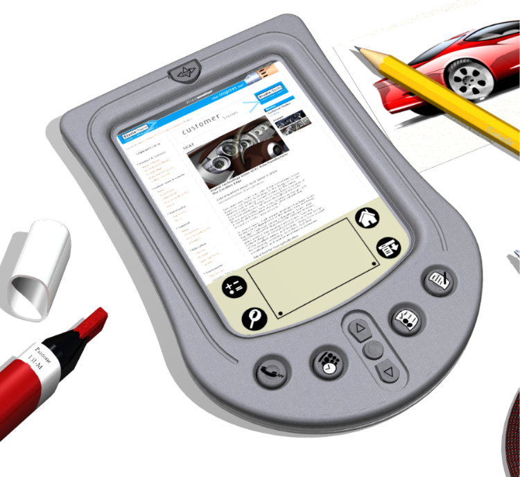此示例图像将草图投影用于小的 PDA 按钮图标、PDA 显示和红色草图。场景使用 Alias RayTracing 进行渲染。