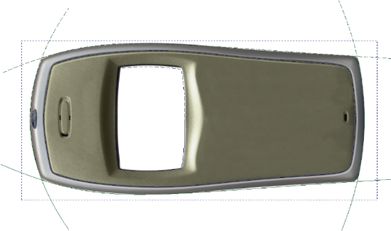 - 创建用于定义设计的二维曲线。在此示例中,我们已在俯视图中创建了曲线,这些曲线跨电话的中心线对称。