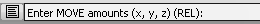 若要输入坐标,请在提示行中键入 X、Y 和 Z 值。这些值必须始终采用 X、Y、Z 的顺序,并且可以将这三个数字用空格或逗号分隔。例如: