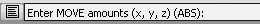 在提示行中,是显示 (ABS) 还是显示 (REL),取决于您所处的模式。若要切换模式,请单独键入字母“r”或字母“a”,也可以在键入坐标之前键入字母“r”或字母“a”。