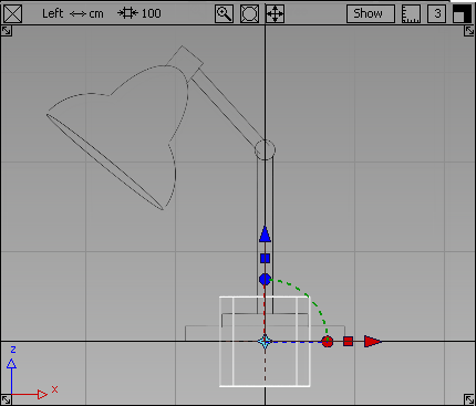 与所有基本体一样,首次将圆柱体添加到场景中时,会出现一个操纵器。操纵器可用于变换基本体,但这不在本教程的学习范围之内。