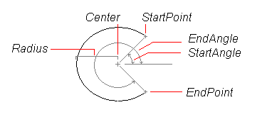 An arc is always drawn counterclockwise from the start point to the endpoint. The StartPoint and EndPoint properties of an arc are calculated through the StartAngle, EndAngle, and Radius properties.