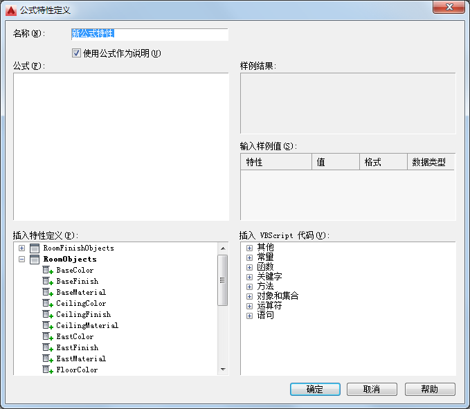 使用以下步骤可以将公式特性定义添加到特性集定义中。公式特性值可以根据其他特性数据的值进行计算。公式特性定义是一种自动特性,因为其显示的值会根据其定义自动确定,因此无法直接编辑。