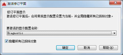 新建构造对象和现有构造对象显示在修订平面上,且所有拆除对象都处于隐藏状态。通过在改建平面类型之间切换,可以在不同的图形“视图”中工作,并避免由于编辑多个图形而引起的错误。修订平面类型的显示设置位于“改建选项”对话框中。