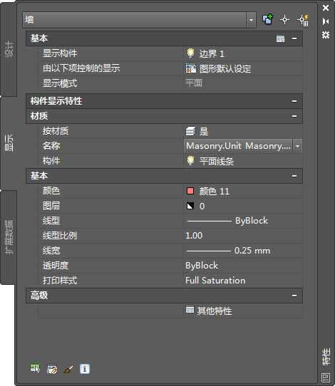可以使用“特性”选项板的“显示”选项卡修改当前显示模式中选定对象的显示特性设置。可以修改作为一个整体应用于对象的特性(例如剖切面高度)的设置,以及对象的单个显示构件(例如图案填充构件的颜色、图层和线型)的设置。