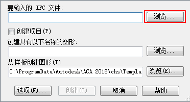 在“输入 IFC 文件并创建图形”对话框中,在“要输入的 IFC 文件”下,单击“浏览”。