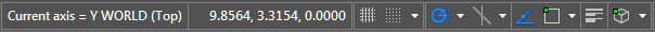 UCS 图标,带有 RTUCS 轴线和显示当前轴信息的状态行: