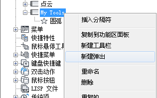 在要向其中添加弹出型工具栏的工具栏上单击鼠标右键。单击“新建弹出型工具栏”。