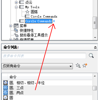中的自定义设置”窗格中,拖动要添加到工具栏弹出型按钮中的命令。