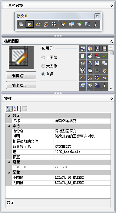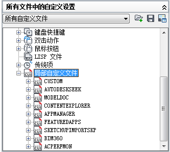 在开始自定义功能区选项卡和面板、快速访问工具栏和其他用户界面元素之前,您应当熟悉自定义用户界面 (CUI) 编辑器(可以使用 CUI 命令打开它)。“自定义”选项卡在默认情况下显示并分为三个窗格:“...中的自定义设置”、“命令列表”和“动态显示”窗格。