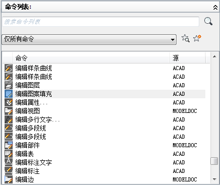 “命令列表”窗格的顶部是“搜索命令列表”框,该框使用户可以根据输入的文字字符串过滤“命令”列表。文字字符串将与命令名的任何部分匹配,并且结果会显示在“命令”列表框中。