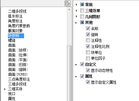 当选中“自定义”和“属性”类别时,块的动态特性和属性将显示在“快捷特性”选项板上。