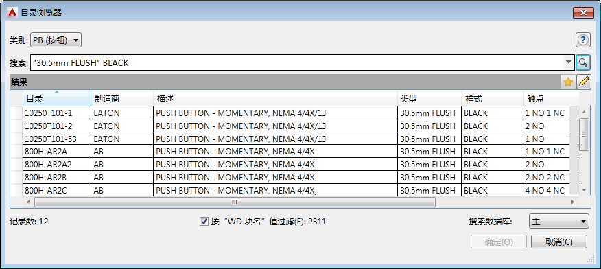 注: 由 ASSEMBLYLIST 值定义的子装配条目不会包含在搜索结果中。使用目录浏览器的编辑模式可以查看和编辑子装配条目。
