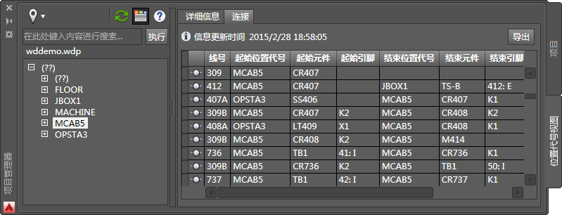 “项目管理器”中的新“位置视图”选项卡提供了激活项目中包含的装置和布线的完整视图。元件按安装代号和位置代号值进行组织。