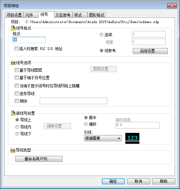 - 定义线号放置:导线上、导线下或导线内。