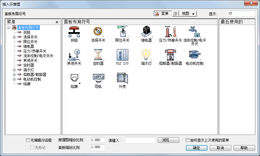 从图标菜单插入示意图时,可以选择目录值,并插入与该值相关联的示意图。如果没有与该目录关联的面板符号,您可以浏览到某个符号,或即时绘制一个符号。