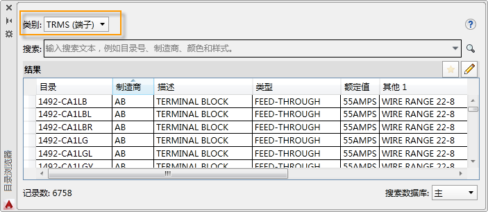 使用端子排编辑器可以管理整个端子排。您可以更改目录指定、添加跳线、关联端子、添加备用端子和附件、插入面板端子排等等。稍后,在“面板布局”主题中,您将了解如何使用端子排编辑器。 查找