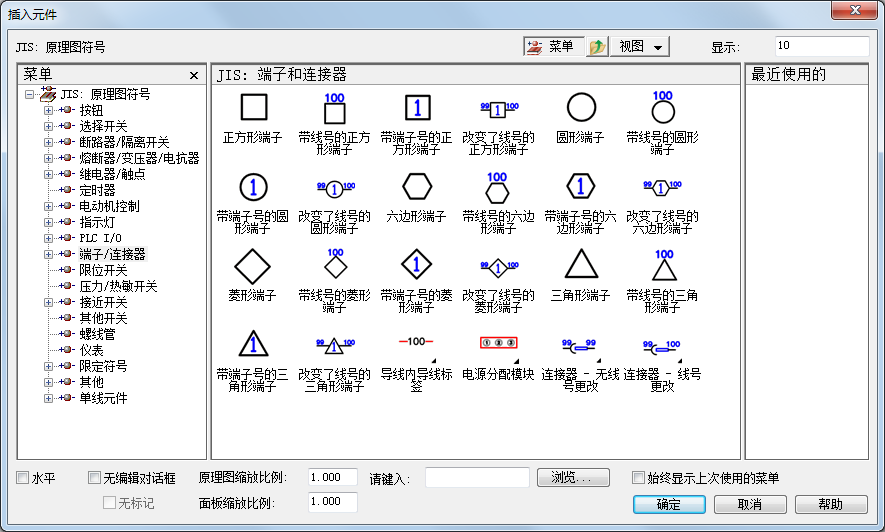 从图标菜单插入端子时,请确保选择相应的行为类型和端子样式。