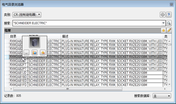 AutoCAD Electrical Catalog Browser 也可以在 Inventor 中使用。Electrical Catalog Browser 访问与 AutoCAD Electrical 相同的目录数据库。通过从目录浏览器选择目录值,将三维零件关联到目录值,并插入这些零件。在 Inventor 中使用目录浏览器时,也可以使用目录数据库编辑功能。