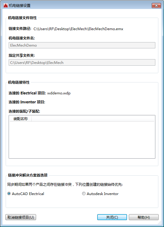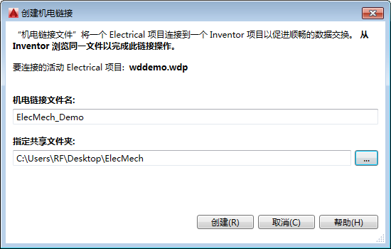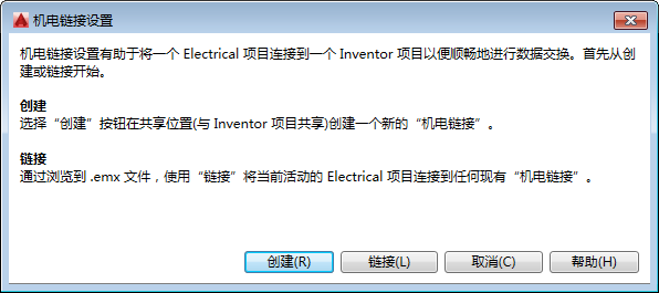 创建将 AutoCAD Electrical 项目连接到 Inventor 项目的机电链接文件。