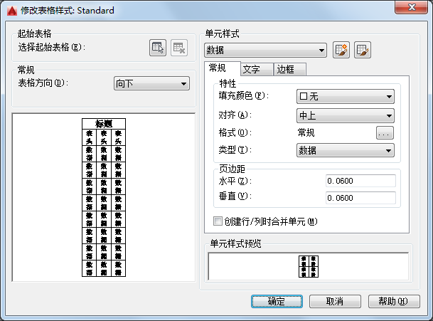 设定文字高度。数据和列标题单元的默认文字高度为 0.1800。表标题的默认文字高度为 0.25。