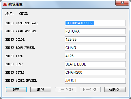 此对话框将更改特定块属性的值。若要更改位置、高度和样式等属性特性,请使用 -ATTEDIT。