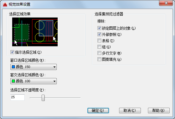 从选择预览中排除图案填充对象。(PREVIEWFILTER 系统变量)