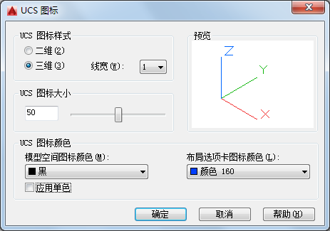 指定二维或三维 UCS 图标的显示及其外观。