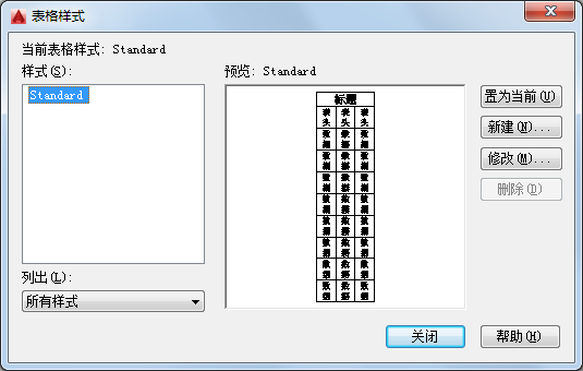 删除“样式”列表中选定的表格样式。不能删除图形中正在使用的样式。