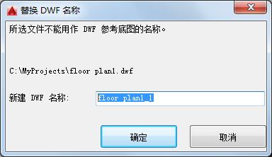 附着的 DWF 或 DWFx 参照的名称必须是唯一的。如果尝试附着两个具有相同名称的 DWF 或 DWFx 参照,将显示“替换 DWF 名称”对话框。